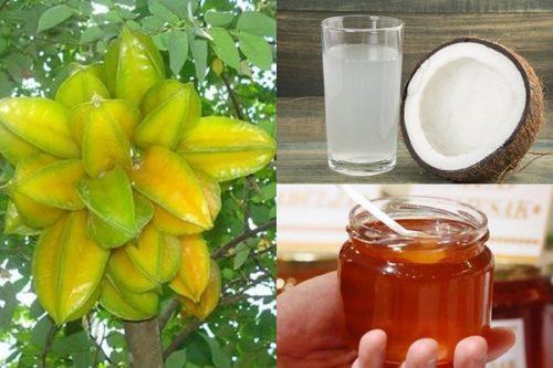 – Cho lượng nước dừa cùng mật ong đã được chuẩn bị ở trên vào bát nước ép khế.