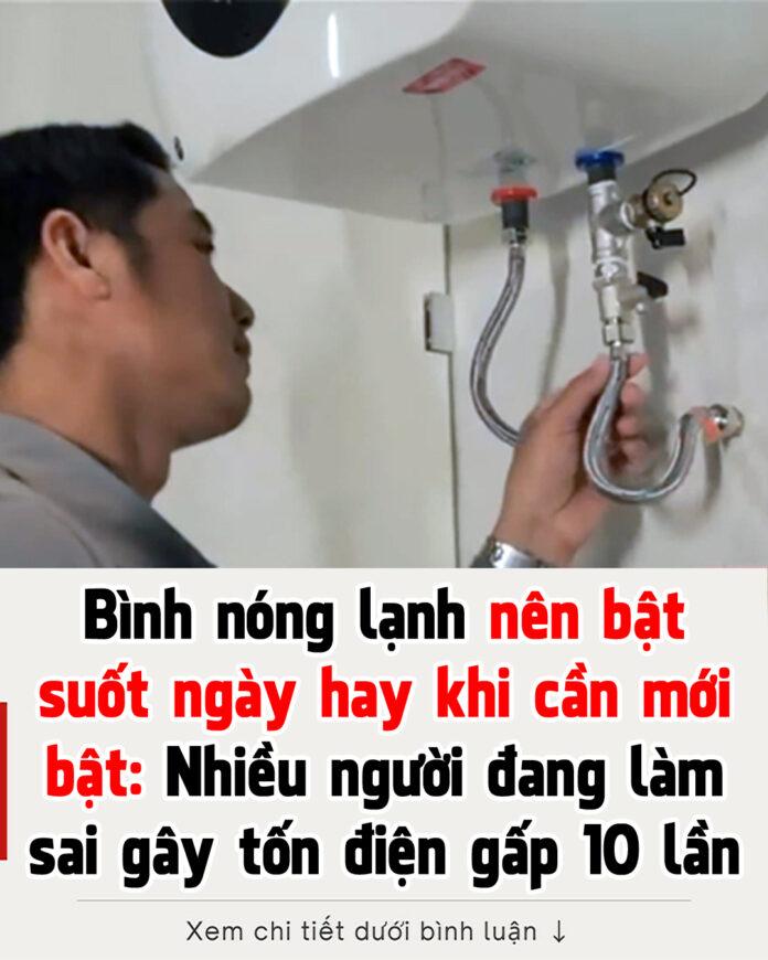 Nhiều gia đình có thói quen để bình nóng lạnh bật 24/24 giờ. Về cơ bản, bình nóng lạnh luôn ở trong trạng thái hoạt động và được cấp điện liên tục. Ưu điểm của việc này là luôn có sẵn nước nóng trong nhà, rất tiện lợi cho việc sử dụng.