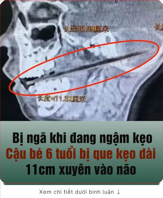 Bị ngã khi vừa ăn vừa chạy nhảy, bé trai 6 tuổi ở Trung Quốc bị que kẹo dài 11cm đâm xuyên từ miệng vào não bộ.