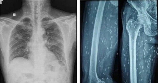 Trên kết quả X-quang và CT-Scan toàn thân, bác sĩ phát hiện bệnh nhân có vô số nang sán dải còn sống hoặc đã bị vôi hóa ở não, nhu mô phổi, trong da, cơ trên toàn bộ cơ thể. Qua điều tra dịch tễ, bác sĩ ghi nhận bệnh nhân có thói quen hay ăn gỏi thịt lợn tái sống và uống nước không đun sôi trong nhiều năm.