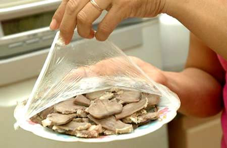 Mang thịt chín còn thừa cất vào tủ lạnh từ ngày này qua ngày khác bằng chiếc màng bọc thực phẩm là thói quen mà rất nhiều người có. Và hầu như chúng ta đều yên tâm rằng, dùng màng bọc thì có thể yên tâm hoàn toàn về độ an toàn. Đã thế lại còn được cất trong tủ lạnh.
