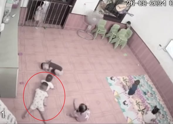 Hình ảnh bé Yuanyuan lúc xảy ra sự việc tại trường mẫu giáo được camera ghi lại tất cả. Ảnh: GDS