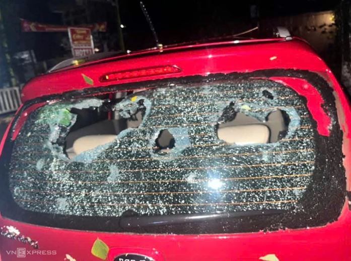 Kính ôtô vỡ do mưa đá ở Bắc Hà. Ảnh: VnExpress.